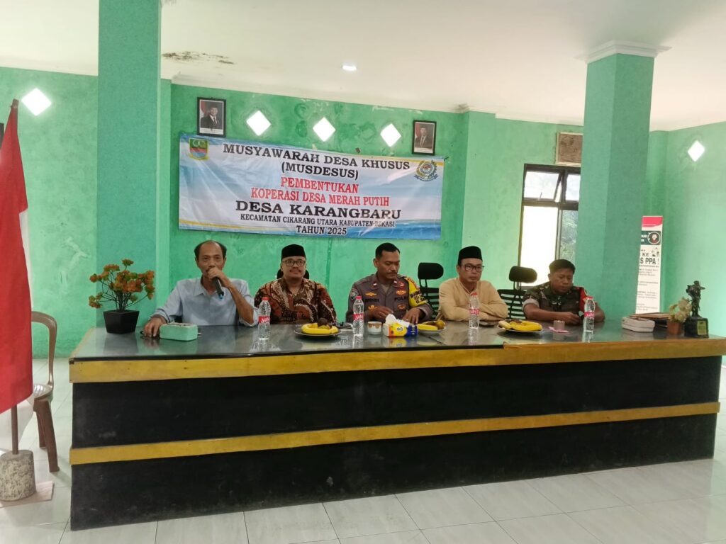 Kabupaten Bekasi – MONITOR JABAR – Pemerintah Desa Karangbaru, Kecamatan Cikarang Utara, Kabupaten Bekasi menggelar musyawarah desa khusus pada Jumat siang (09/05) guna membahas pembentukan pengurus Koperasi Merah Putih Desa Karangbaru. Kegiatan ini menjadi langkah awal penting dalam upaya meningkatkan kesejahteraan ekonomi masyarakat desa.