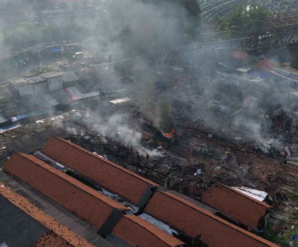 Informasi awal menyebutkan bahwa sekitar 164 kios hangus terbakar, dengan luas area yang terdampak mencapai kurang lebih 4.000 meter persegi.